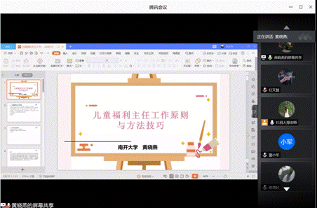 文法学院院长助理刘强副教授、保定市民政局儿童服务处樊庆领处长、保定市社会工作协会秘书长穆伟老师、文法学院社工专业实习管理郑玲老师、周芷晴老师及全体学员出席了会议,培训由刘强副教授主持。本次培训班线上学习人数单场最高达10108人。