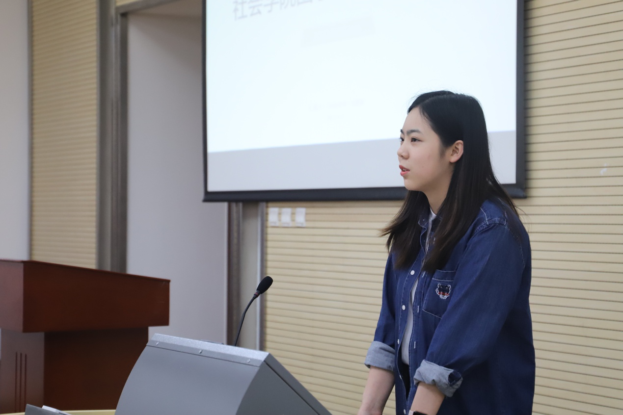 社会学社负责人苏思颖同学首先表达了对社会学社在过去的工作成果的赞扬。她在发言中提到,社会学社已经发生了很大的变化,社会学社不仅实现了与信息中心的合作,曾经的提案与策划也逐渐得到实施。同时,苏思颖同学还提到,因为疫情延迟的社刊创办以及读书会将会陆续开展和恢复。