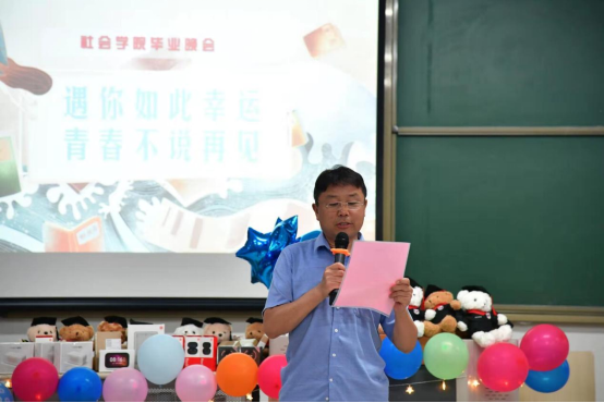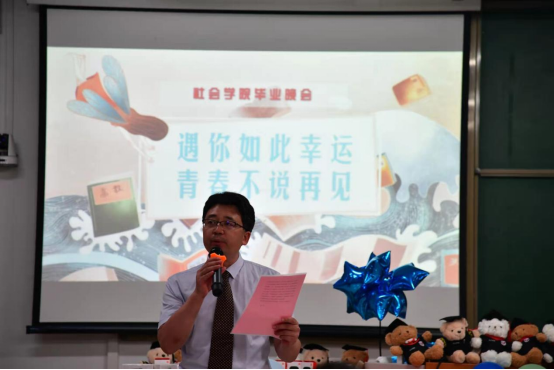 接着,张超老师代为转达常务副院长赵一红老师写给毕业生的寄语,赵老师对社会学院首届毕业生表达了最诚挚的祝福和最热烈的祝贺,并以校训勉励毕业生,希望各位同学能够为中国的哲学社会科学事业做出自己的贡献,也祝愿毕业生工作顺利,家庭幸福,事业有成。
