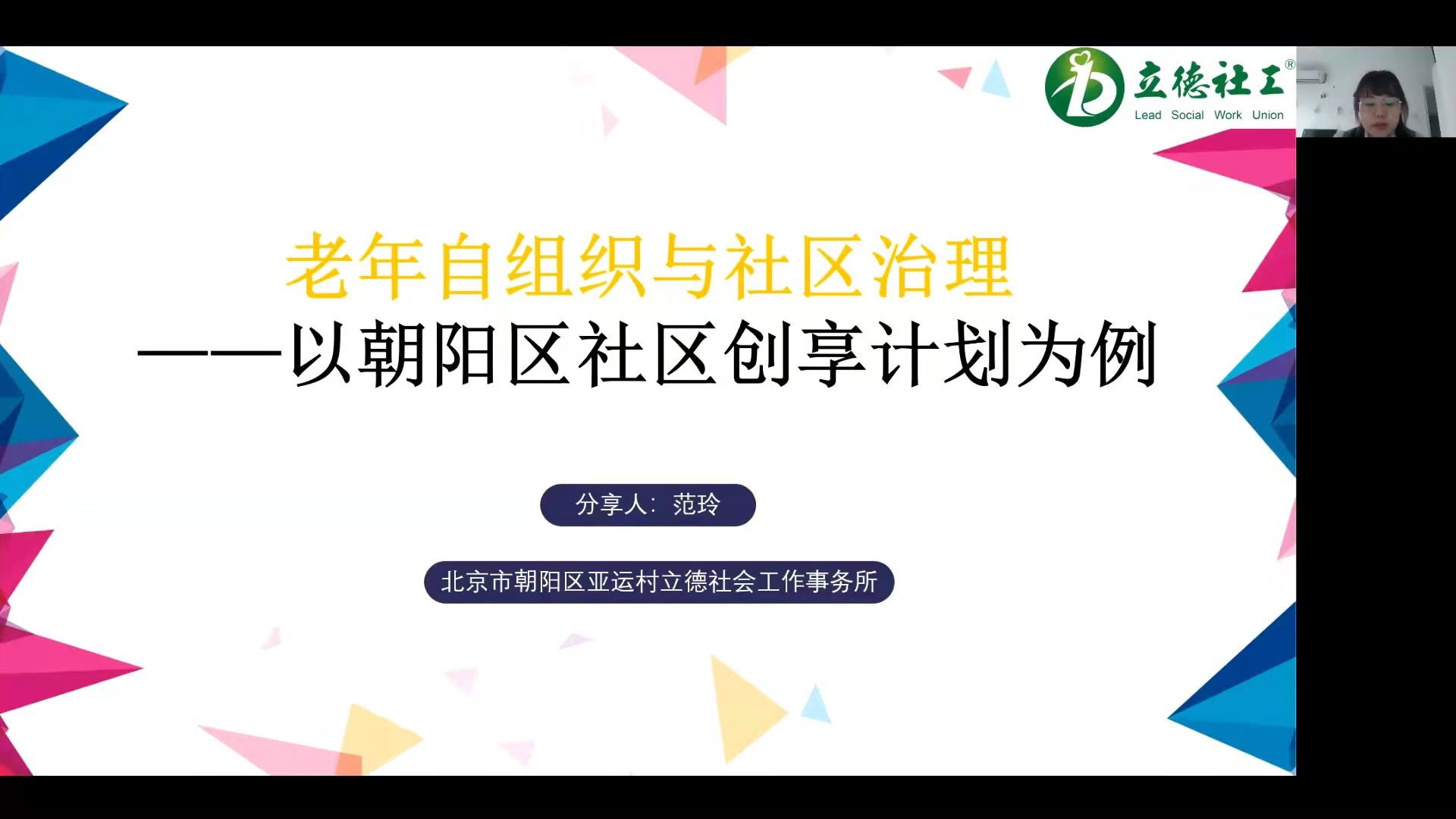 北京市朝阳区亚运村立德社会工作事务所社区治理事业部总监范玲以“老年自组织与社区治理——朝阳区社区创享计划模式分析”为主题,从创享计划简介、老年人群体参与情况、优越性分析和面临问题四方面进行分享。朝阳区社区创享计划通过居民提案、社工提案和0元提案三大方式开展,并分为社区环保类、守望相助类、社区文化类和社区融合类四大内容。范玲认为创享计划成功之处在于:一是以居民兴趣和需求为切入点,能最大程度调动居民参与的主动性;二是进阶式地培育和孵化带头人,能提高他们的自治水平;三、注重居民尤其是老年群体参与的价值与收获感,能提升居民的自我认同感和社会认同感。同时,创享计划也面临居民循规蹈矩、难以培养新鲜血液和多元化主体带来的挑战等问题,为此,社工和社工机构应该引导居民多分享多交流,对活动开展合理规划、强化整合相关资源,不断拓宽提案思路、集思广益等,促进居民自治,构建和谐社区。