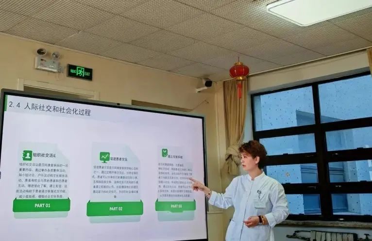 活动伊始,护士长从四个维度——精神障碍患者康复的基本情况、主要做法、成效及未来工作重点——为同学们详尽阐述了日间康复病房的管理机制。通过介绍,同学们深刻体会到医护人员在治疗过程中的专业精神与人文关怀。医院创新性地引入精神障碍康复者作为志愿者,成为医院医疗照护体系中的一部分。这些康复志愿者被医护人员亲切地称为“小伙伴”,从这个称呼中就彰显出我们社工服务的价值和理念——视精神疾病为众多疾病之一,患者虽然患病,但依然拥有人格尊严和价值,能够并愿意在力所能及的情况下为社会作出贡献。