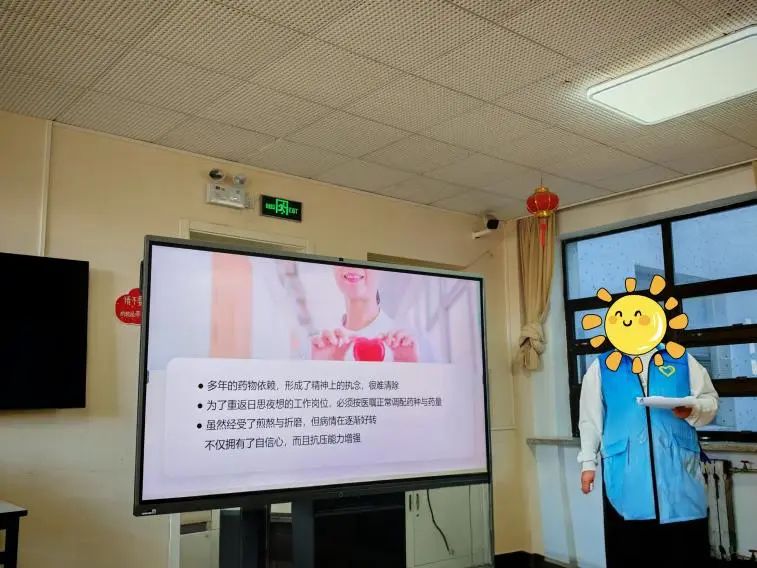 一位双相情感障碍康复志愿者分享了他的家庭背景和成为志愿者的心路历程。其中一个故事深深触动了在场的每个人:他的家庭结构很简单,多年来一直与年迈的父亲相依为命。但在一次住院治疗期间,老父亲不幸摔倒骨折,无法独自生活。他知道后心急如焚,尽管治疗周期尚未结束,他坚持要求出院,以便回家照顾父亲。面对这一困境,医院做出了一个充满人性化的决定——允许他的父亲一同住进病房,以便他在继续治疗的同时,也能照料自己的父亲。这一举措不仅体现了医院对患者家庭的关心和理解,也让他深感感激。康复后,他以志愿者的身份回馈医院,为同样饱受精神障碍困扰的患者提供服务。他的经历告诉我们,尽管疾病带来痛苦,但同时也是学习和成长的机会。分享结束时他富有哲理地说:“生活就是找乐子”,这仿佛是在提醒我们,即使在人生最阴暗的时刻,也要努力寻找属于自己的光明。