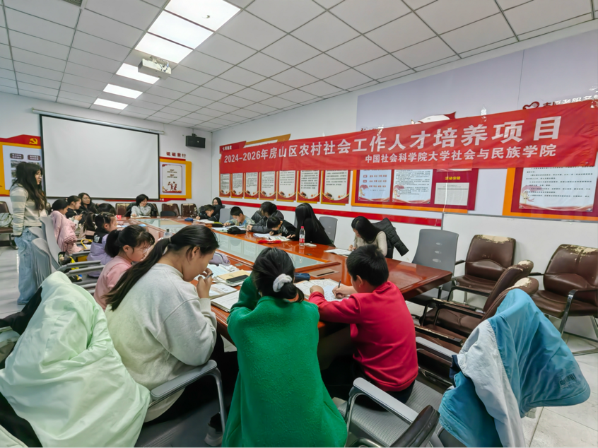 社工师生依托“房山区农村社会工作人才培养项目”(以下简称乡工项目)为新就业群体子女开展了寒假公益课堂。