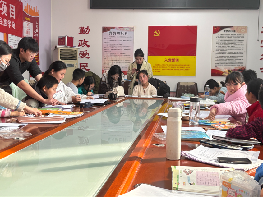 “殚竭心力终为子,可怜天下父母心”,正值寒假期间,新就业群体子女的课业辅导问题正是他们最为关心的事情。因此,乡工项目组联合朱岗子村的乡工向新就业群体发布了招募通知,并精心组织了十几人的师生团队,分工合作为其提供课业辅导。本次公益课堂共招募了近20名小朋友,社工针对孩子们的不同年级和学科需求,制定了个性化的辅导方案。对于基础学科知识,如数学的运算规则、语文的字词积累和阅读理解,社工通过生动有趣的案例和深入浅出的讲解,帮助孩子们夯实基础。例如,在数学辅导中,利用生活中的购物场景,让孩子们轻松理解四则运算的实际应用;语文辅导上,通过经典故事的阅读与分析,如《鲁滨逊漂流记》,提升孩子们的阅读能力和写作技巧。英语学习是辅导的重点之一。考虑到这些孩子可能缺乏良好的语言环境,社工创新教学方法,采用情景教学和互动游戏的方式,激发孩子们的学习兴趣。从简单的日常问候语到复杂的语法知识,孩子们在轻松愉快的氛围中逐渐掌握英语这门语言工具。社工还积极引导孩子们进行英语口语交流,纠正发音,让孩子们敢于开口说英语。除了知识传授,学习方法的指导也是关键环节。除了课业辅导,社工还特别关注孩子们的学习习惯和心理状态,鼓励学生积极提问,培养他们的自主学习能力,教会他们如何制定学习计划、整理笔记和进行有效的复习,通过思维导图、错题整理等方法的传授,帮助孩子们提高学习效率,养成良好的学习习惯。对于学习困难的孩子及时给予心理上的支持和鼓励,增强他们学习上的自信心。