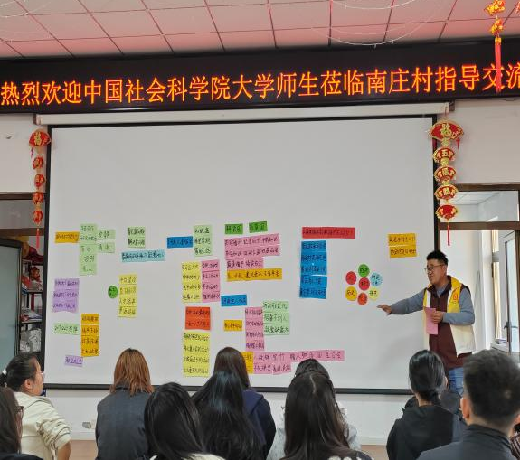 第二站我们来到了南庄村,一线社会工作者甄建雷与彭君芳老师的实务分享成为本次行程的“核心课堂”。崔村镇一线社会工作实务的分享让同学们看到社工的“桥梁”角色。“当社工提到在具体的农村社会工作实践中他们将政策翻译成残障老人听得懂的语言,协助村民卖苹果小镇的农产品以发展经济,并积极对接村两委的行政需求时,我开始明白原来社工的专业性在于‘精准匹配’。”张龄月同学如是说。通过这次交流,同学们体会到了社会工作的“专业性”就藏在那些看似平凡的行动里。