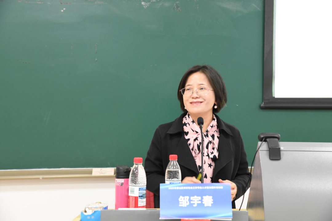 庞志副教授以“新时代基层治理背景下社区工作者的职业发展”为题,深入讲授了基层治理体制及队伍变迁、社会工作者的角色与基层服务、社会工作者基础能力训练三个部分。庞老师指出,当前农村社工人才存在学历层次偏低、年龄结构老化、专业资质不足以及性别比例失衡等问题,由此引出基层服务实践面临的四维挑战,即服务需求多样化、资源供给不足、工作环境艰苦、专业支持匮乏。针对这些挑战,庞老师着重强调了乡村实务技能的提升方向,包括社会组织与动员、乡村文化建设、生态环境保护、乡村经济发展等四个方面,旨在为基层社会工作者提供有效的工作方法和思路。