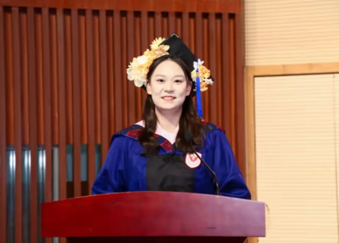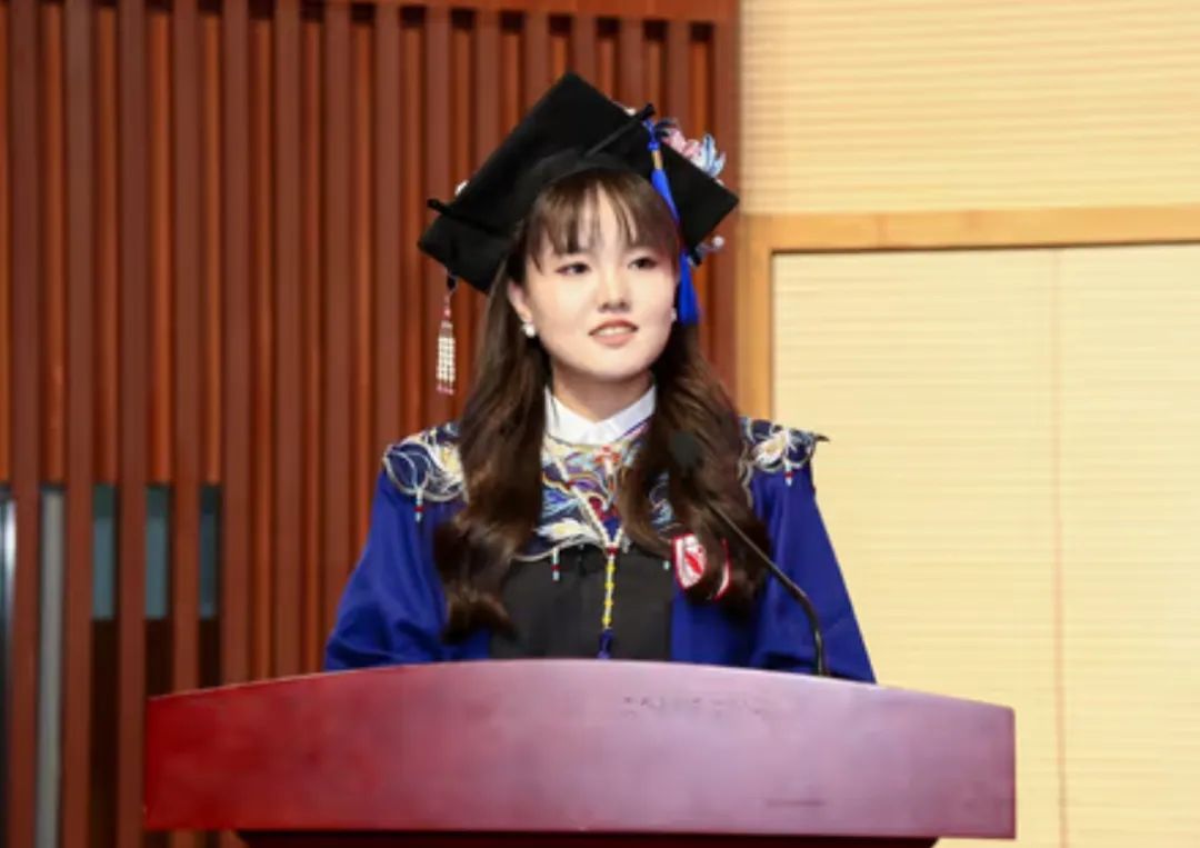2021级博士研究生杨标致代表博士学位获得者发表了题为《成为自己,成为世界多样性的一份子》的感言。她坦言自己并非传统优绩主义定义的“成功者”,但学院师生们的“看见”与鼓励加强了她认可自我的勇气。发言中,她特别感谢学校包容、共建的氛围,指出无论是非正式讨论还是正式平台,学生的声音都能被倾听,建设性意见得以推动校园改进(如图书馆储物柜、食堂甜品店等)。她深情感谢导师李炜老师的悉心指导,以及学院宽松自由的工作环境和注重学生意见的民主作风。杨标致认为,在师徒制的培养模式下,每位博士生都经历了独特而充满挑战的成长。她祝贺所有毕业生在博士生涯中“成为了自己”。无论以何种方式——真诚、专注、执着研究或选择不同道路——成为了世界多样性的一份子,期待大家保留真实,未来相遇时能互道一声“原来我们都在这里”。