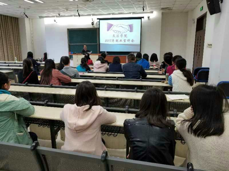 2017年11月4日下午,文法学院师生在教学楼123教室举办了2018届毕业生就业交流会。此次交流会邀请了往届优秀毕业生代表来学校和同学们进行就业方面交流和就业经验介绍。参加会议的有文法学院院长助理刘强老师、主管就业的吴艳辉老师、李琳老师和部分在校生。