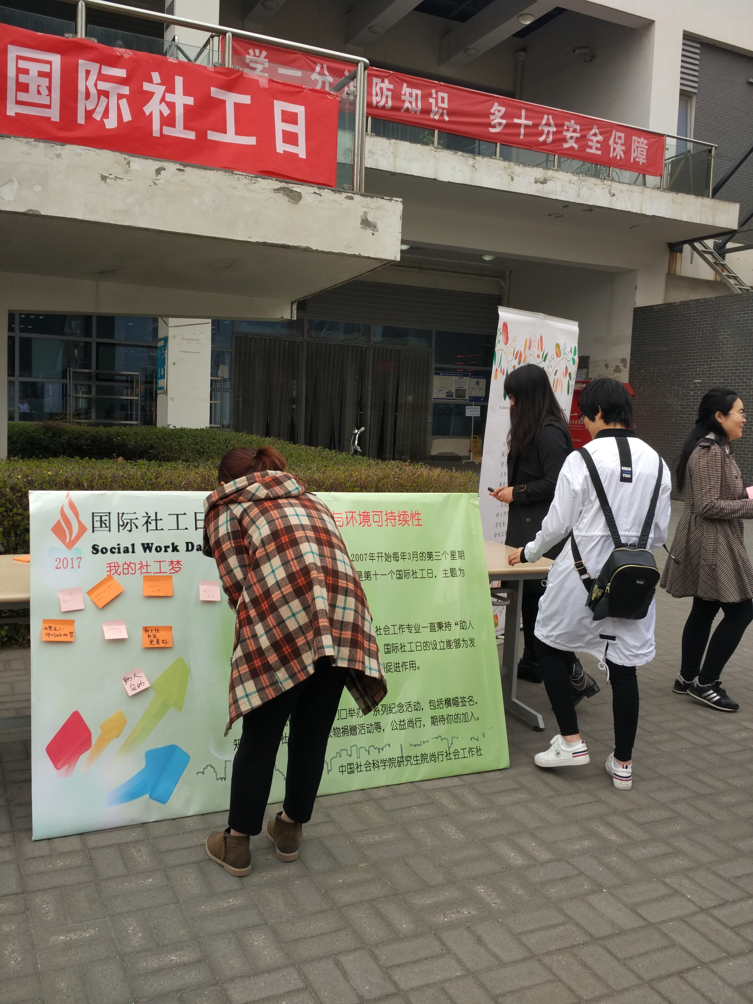 2017年3月21日是第11个国际社工日,是广大社会工作者和社会工作师生的共同节日。根据民政部办公厅发出的《关于组织开展2017年社会工作宣传周活动的通知》,中国社会科学院研究生院尚行社发起了以“社工,让社区更美好”为主题的“国际社工日”系列宣传活动。本次活动由中心尚行社承办,中心吴艳辉老师参与了此次活动。