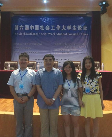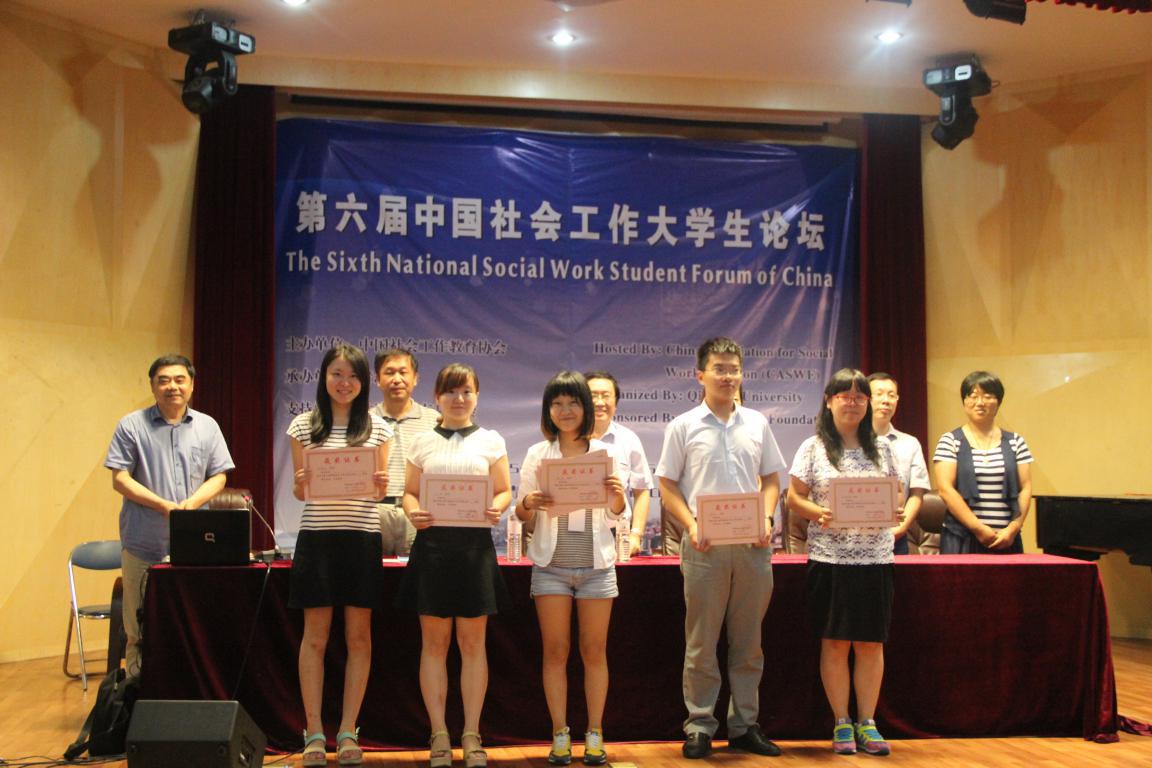 2014年8月5日至6日,以“社会治理创新与中国社会工作的发展”为主题的第六届中国社会工作大学生论坛在青岛大学举行。中国社会工作教育协会会长、中国社会学学会副会长、北京大学王思斌教授;中国社会工作教育协会副会长兼秘书长、中国青年政治学院研究生处处长史柏年教授;中国社会工作教育协会副秘书长、山东大学哲学与社会发展学院社工系主任高鉴国教授;青岛大学副校长夏东伟教授等社工界专家、全国120多所大学、科研院所的老师和同学们共200余人参加论坛。我中心2013级社会工作硕士乐洋、牛金玲和李成龙三位同学的论文成功入选并受邀参加此次论坛,其中李成龙同学的论文获得“第六届中国社会工作大学生论坛三等奖”。