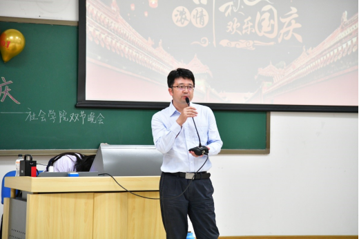 在节目开始前,社会学院党总支副书记张超老师致辞,张老师肯定了同学们为筹备活动所做的各种努力,向同学们表达了节日的问候。