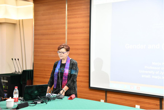 在第一部分,以Mary Richmond和Jane Addams为例讲解了北美社会工作历史,同时强调目前学界对于社会工作历史的研究是缺乏的,有待进一步发展。在讨论环节,同学对于教授讲解的女性主义表现出了积极的兴趣,有同学问道“我观察到女性更多的是从事一线社会工作,承担着照顾者的角色,而在组织或者机构内部的管理层更多的是男性,您认为这是一种霸权吗?芬兰存在这种情况吗?”,对此,Marjo教授指出,在芬兰,社会工作这一职业中男性和女性没有太大的差别,社会工作是合作式的;在制定社会政策上,男性可能具有一定的优势,但是她认为我们应该更加关注在专业上的提升。女性主义不是一种矛盾和冲突,而在于提升女性在社会中的地位,与此同时女性与男性也不是生理上的二元对立状态。女性主义的发展不仅对于女性,对于男性也同样有积极作用。作为一名社会工作者,我们需要善于观察,看到问题。在芬兰以及其他国家,女性是大多数家庭问题的求助者,且被看作是有问题的人,这一点需要重视。