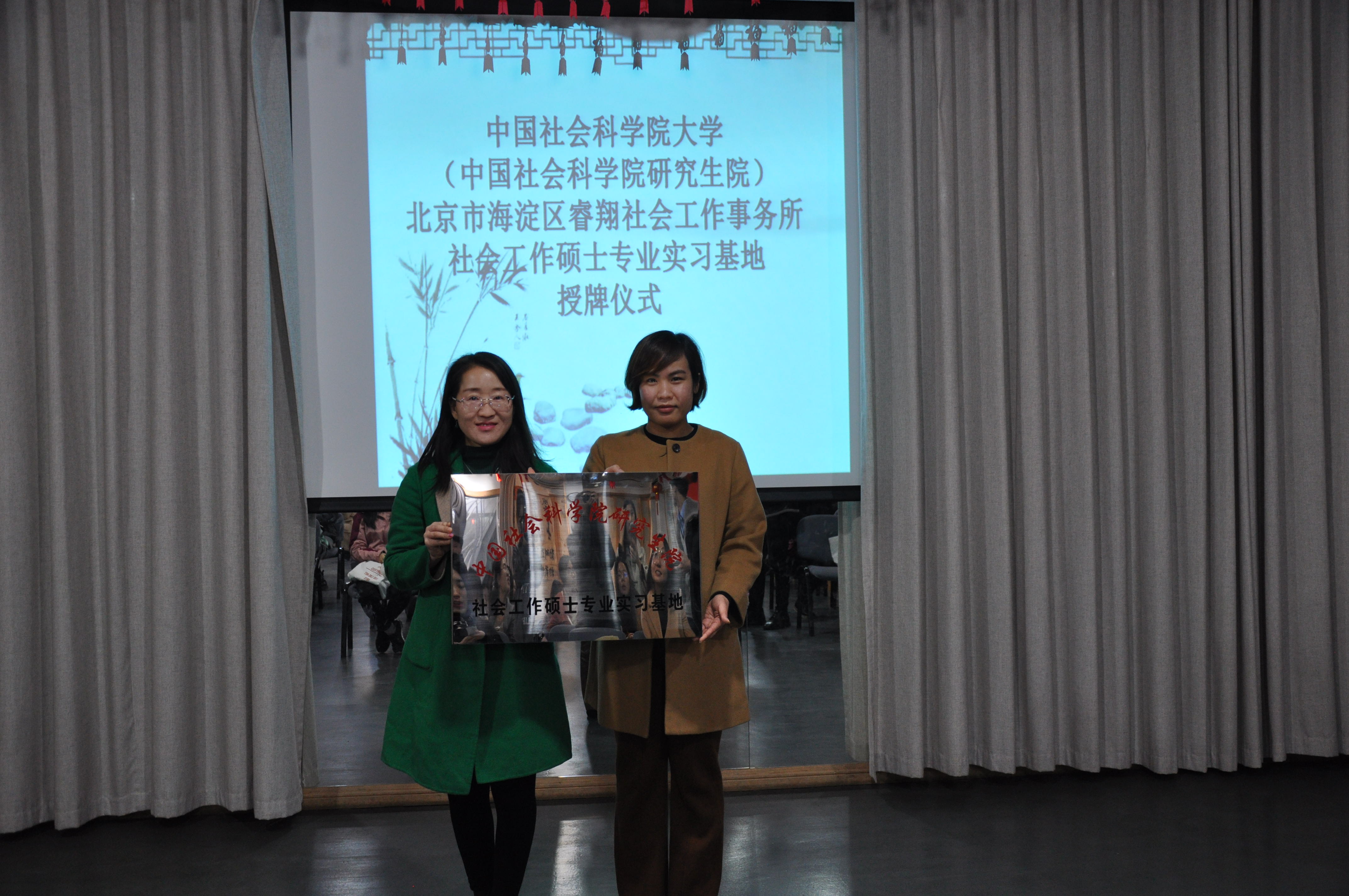 文法学院社工专业实习管理办公室主任郑玲老师与睿翔社会工作事务所刘麓老师签署了实习协议,并举行了实习基地授牌仪式。睿翔社工事务所刘麓老师表示非常欢迎同学们去阜四小院开展实习工作。