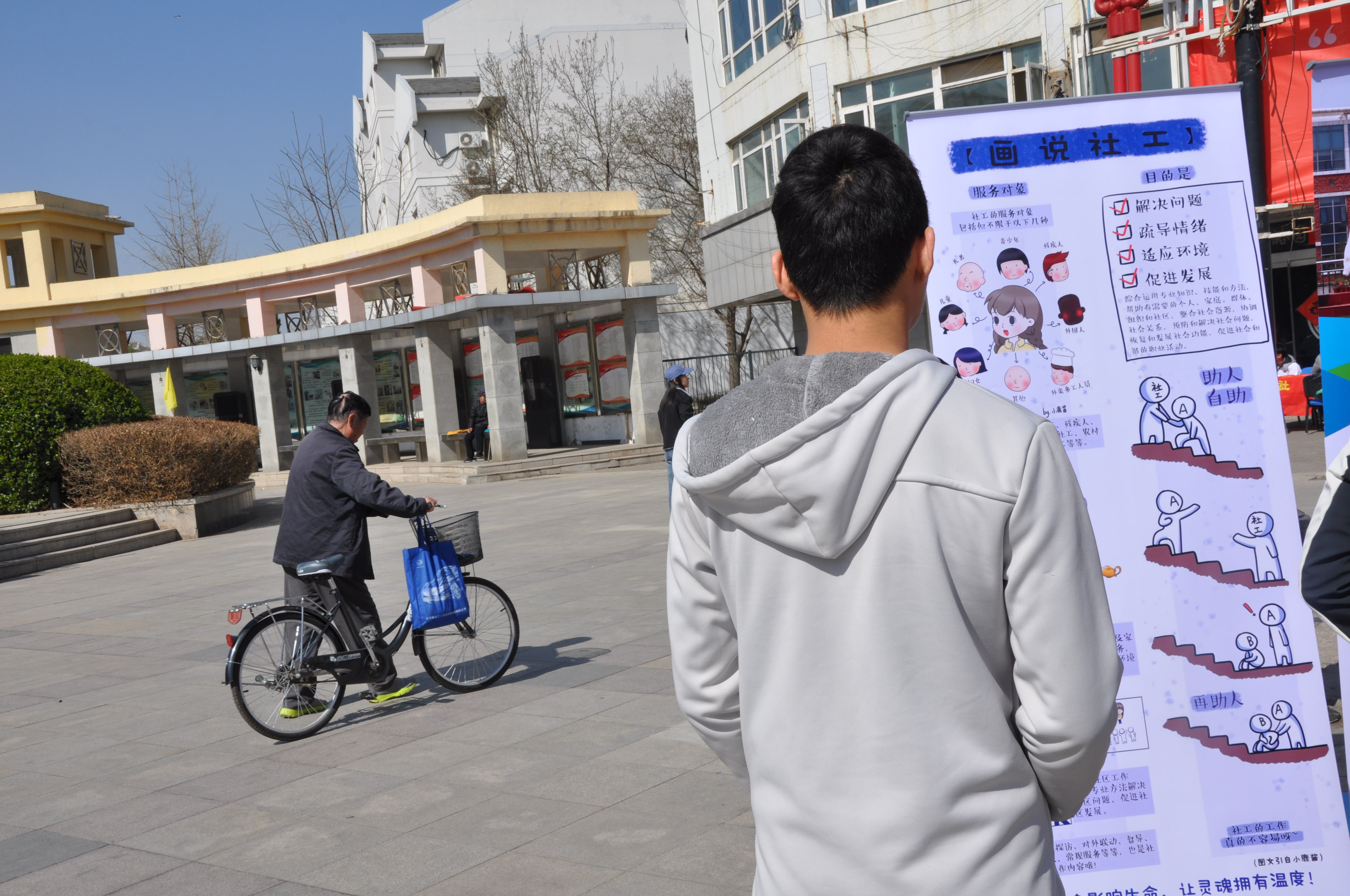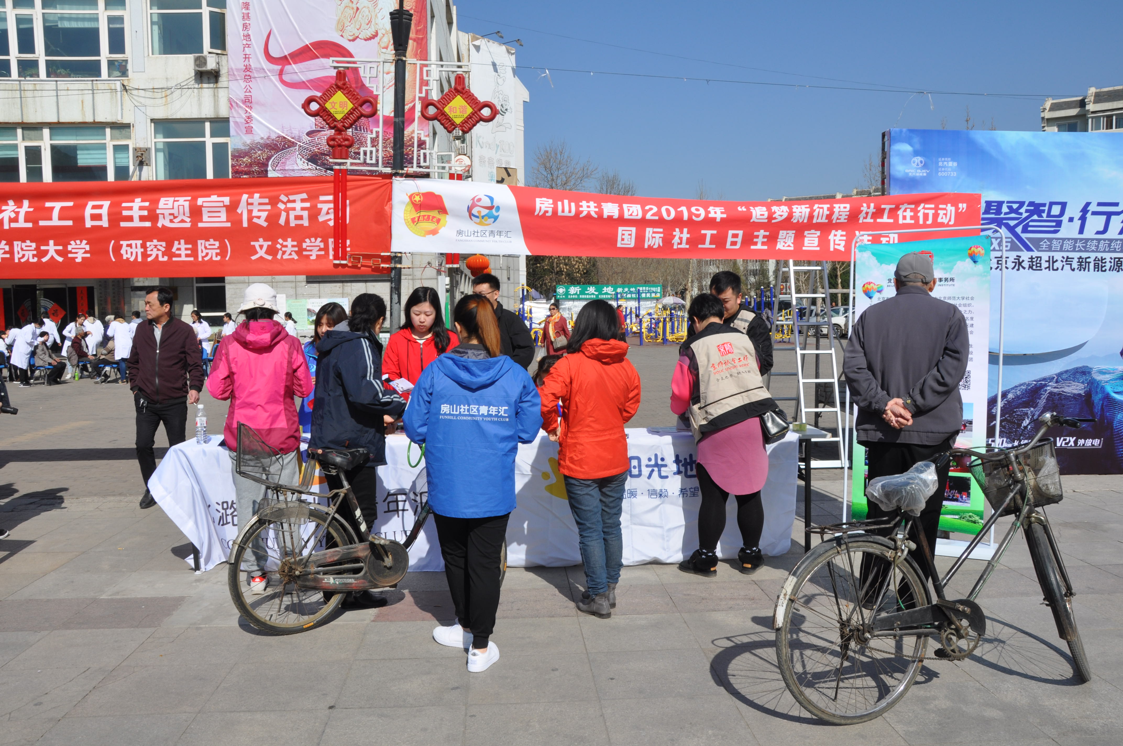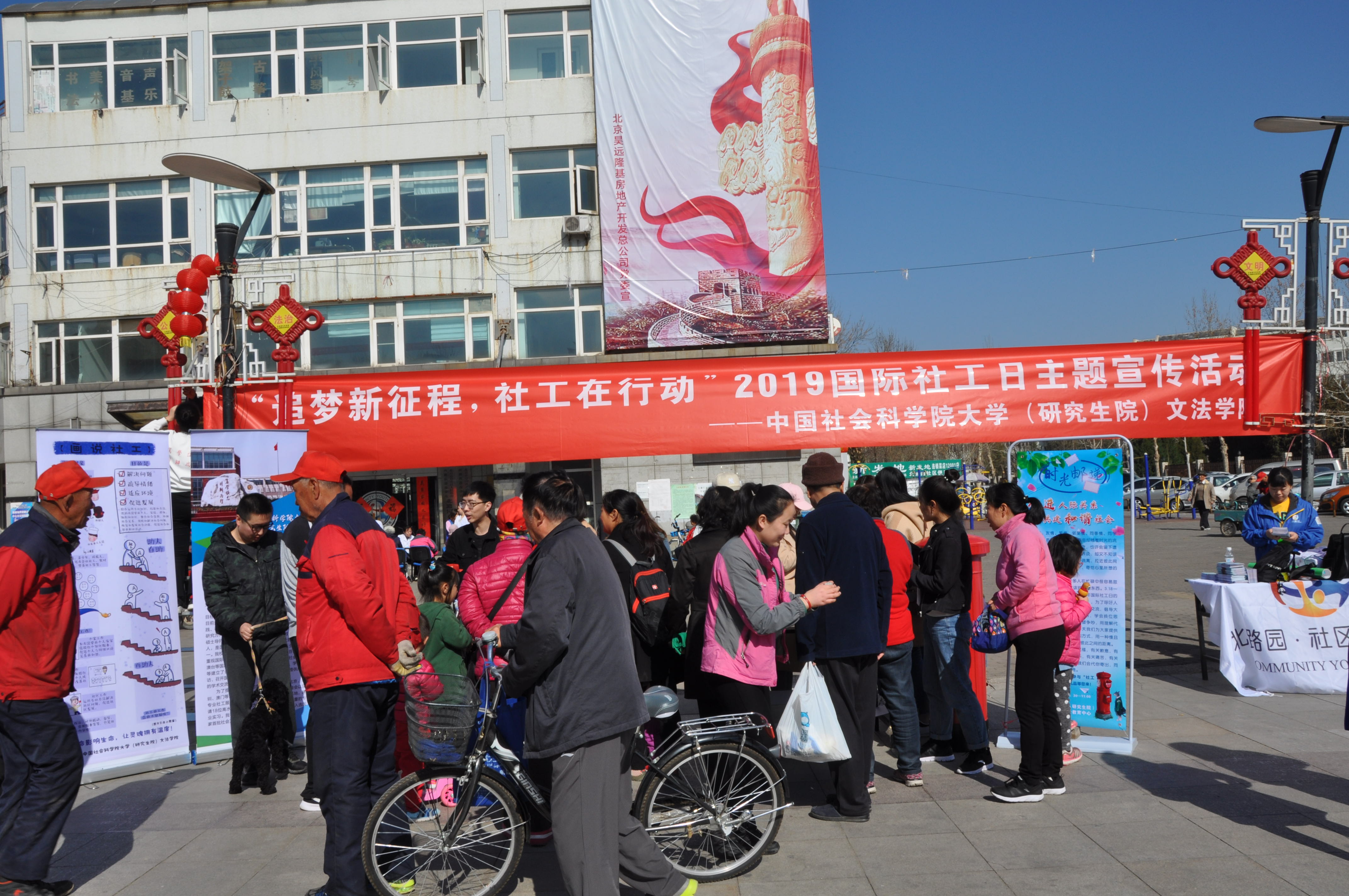 文法学院联合房山团区委、房山区北潞园社区青年汇在北潞园社区综合服务中心广场,共同举行了“追梦新征程,社工在行动”、“促进人际关系,共建和谐社会”为主题的社工主题宣传活动。