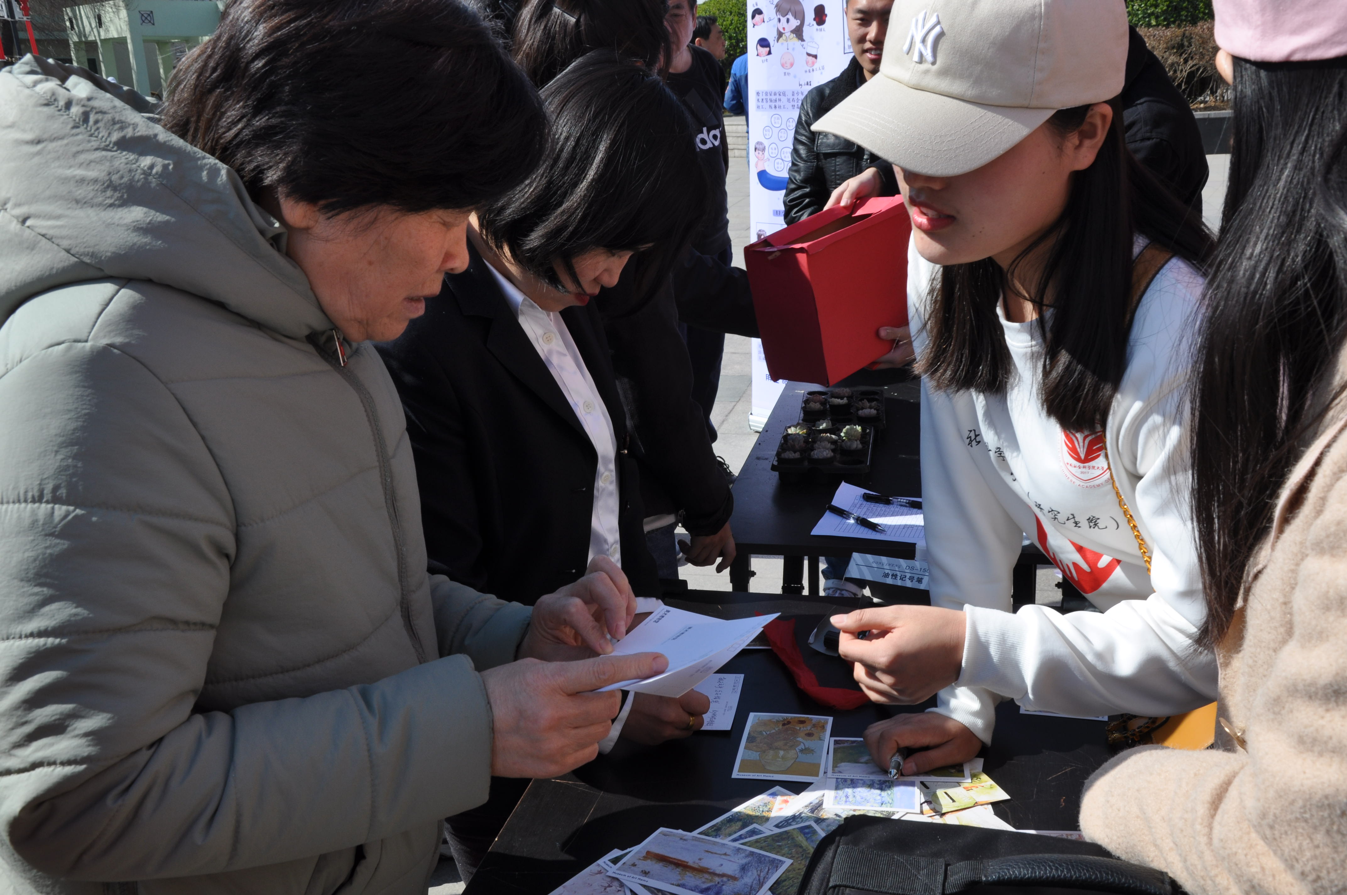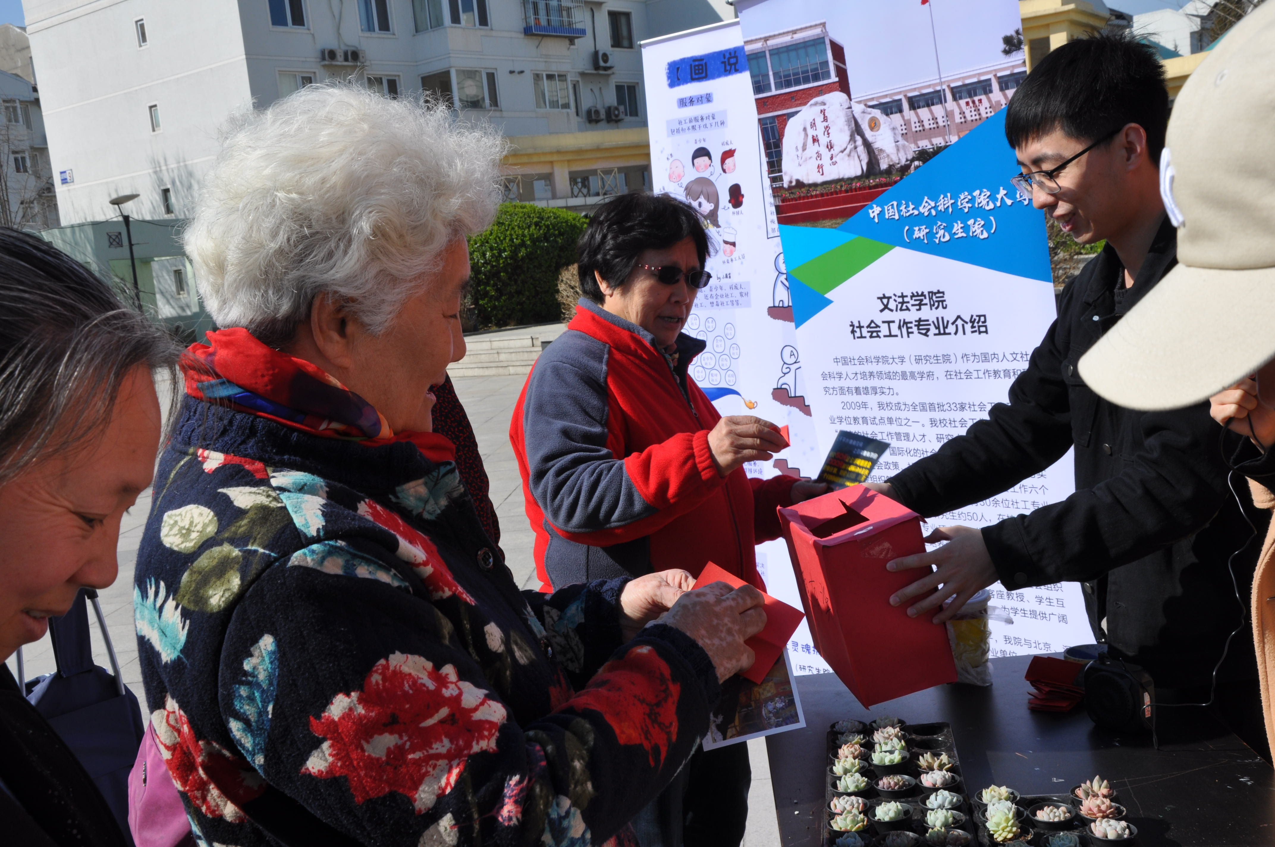 最后,为了加深社区居民对社会工作的认识,本次活动还特意设置了“社工小知识”有奖问答环节。居民从社工准备好的答题箱中抽取“社工小知识”卡片进行回答,回答正确的居民可以免费领取一盆多肉植物带回家,对于回答错误的居民,则由社工认真的为其做相应讲解,并邀请他们参与“时光慢递”明信片邮寄活动,通过居民与社工的互动,现场气氛活跃而井然有序,也进一步增进了社会工作知识的普及,让更多的人了解社工,认同社工。