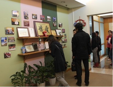 同学们在老师的带领下,早早的抵达大厦,基金会项目综合部公共关系负责人张星热情的接待了我们。张星引导同学们参观基金会办公区,并进行讲解。