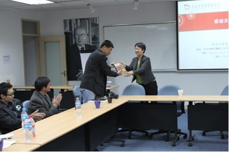 随后,同学们在会议室一同与张星进行交流。张星首先主讲基金会基本情况,包括基金会LOGO、理念,及各种执行项目,如创业培训、教育支持、孤儿救助、疾病防治、扶贫赈灾等等,其中张星丰富的介绍了基金会与彼得·德鲁克管理学院的合作,这些在基金会的网站和宣传页上也都有比较详细的介绍。
