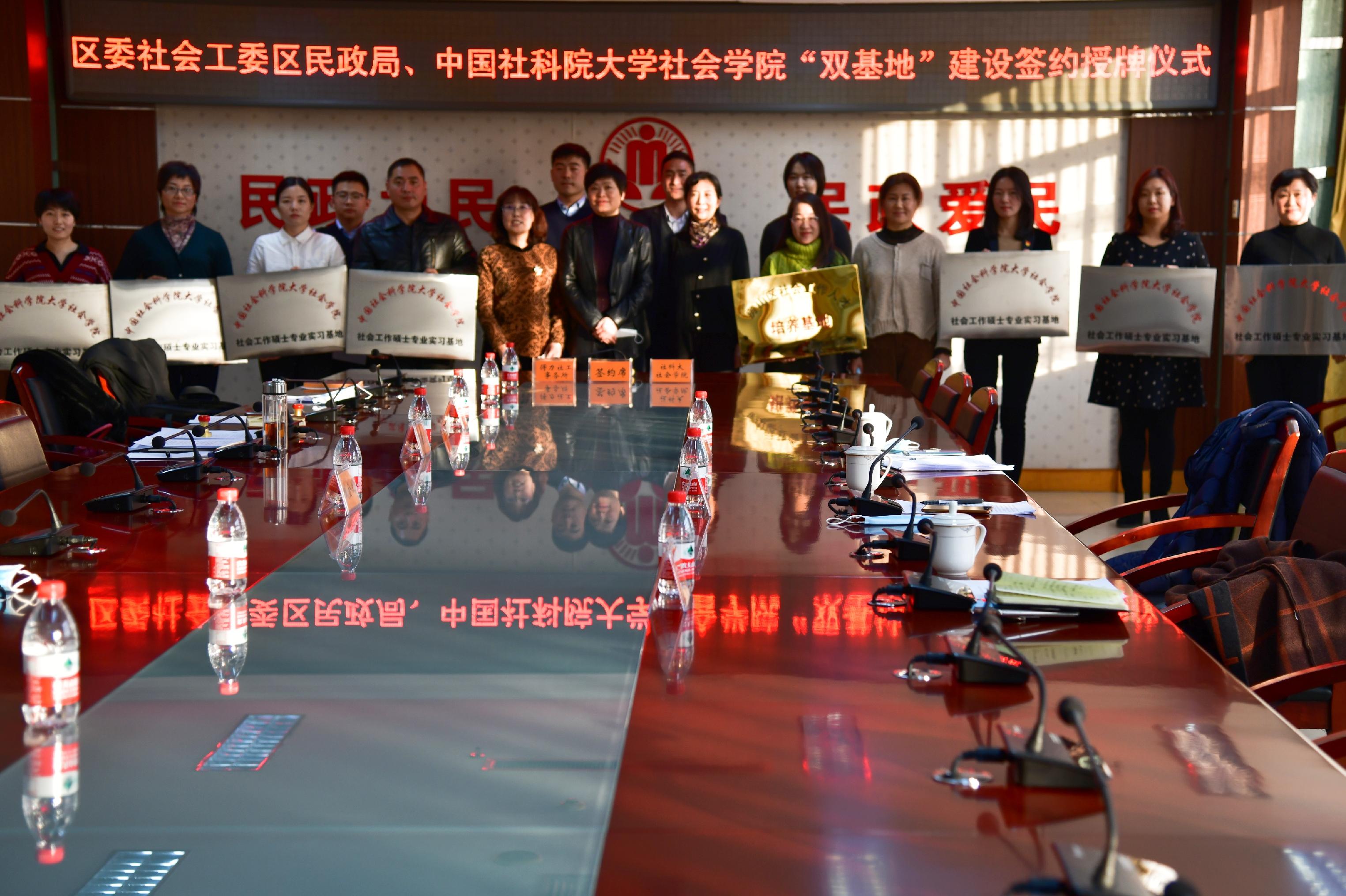 为了促进韩漫库 实习基地建设,为社会工作专业学生提供更多实践机会,2020年12月22日,韩漫库 与房山区委社会工委、区民政局举行了“双基地”建设签约授牌仪式。韩漫库 常务副院长赵一红教授,房山区委社会工委书记、区民政局局长臧金凤,房山区委社会工委委员、区民政局副局长张桂冬以及学生管理与实习实践办公室副主任郑玲,实习管理老师周芷晴出席了签约授牌仪式。参加仪式的还有房山区社会工作者联合会、房山区社会组织服务中心、房山区春燕社会工作事务所等十家社工机构负责人。