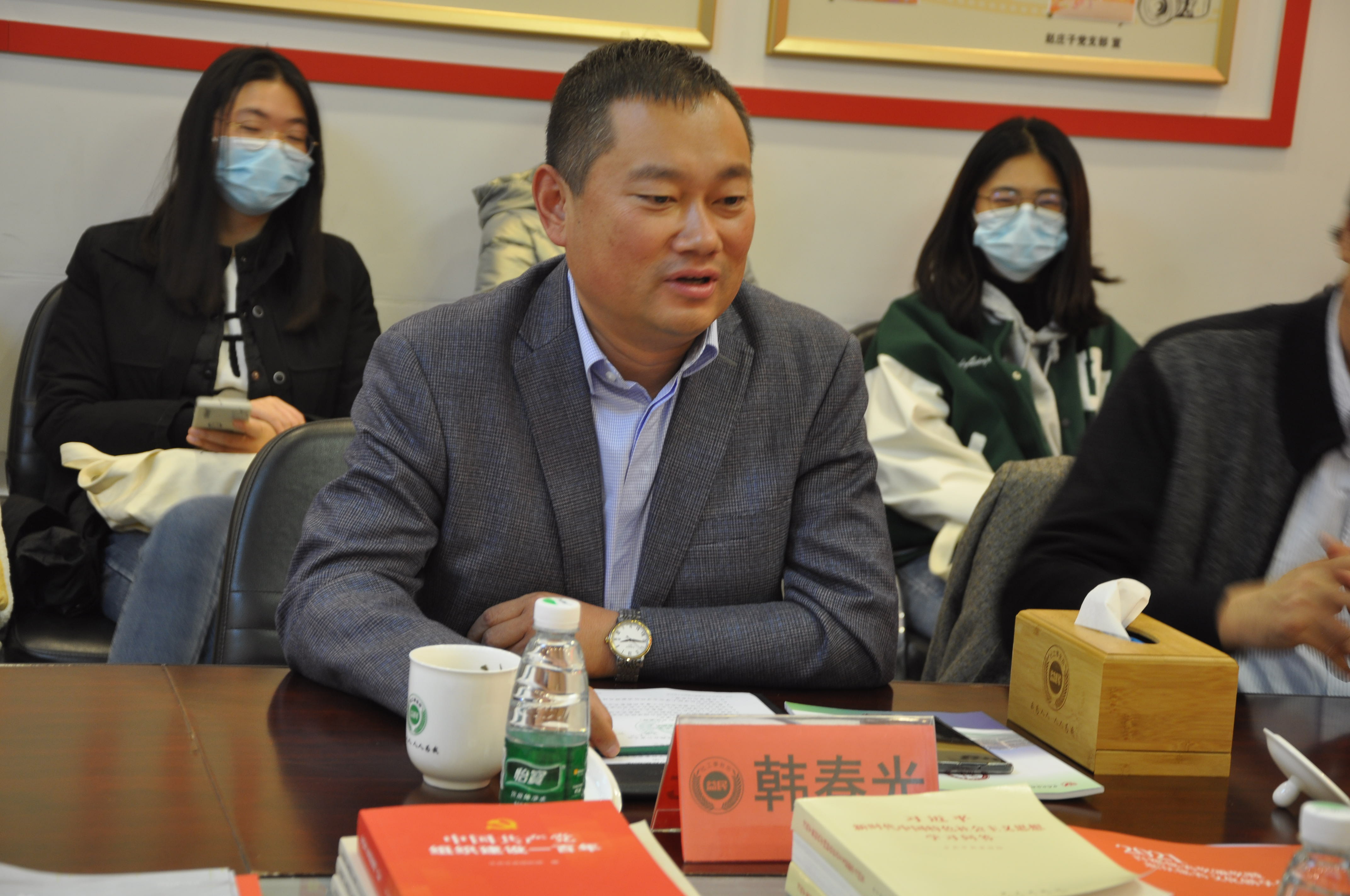 韩春光主任代表益民农村社工事务所讲话。韩主任对双方的合作和实习基地建设表示了期待。同时,韩主任向同学们介绍了赵庄子村“三个三年”的治理历程与发展成就,向大家展示了乡村振兴与农村社会工作实务的实践经验与体会。