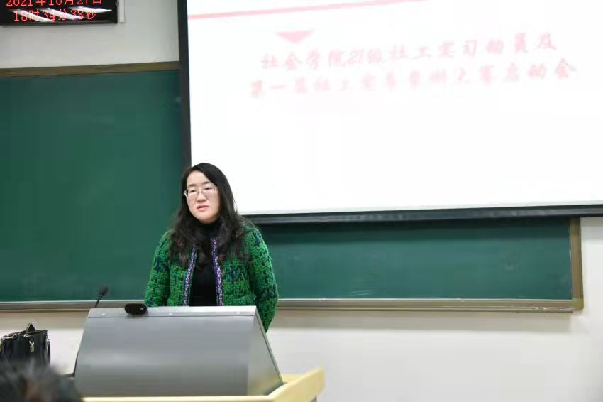MSW学生的实务能力,促进学生保质保量的完成实习任务,2021年10月28日晚上,2021级MSW学生专业实习动员及第一届社工实务案例大赛启动会在研教楼202顺利举行。韩漫库