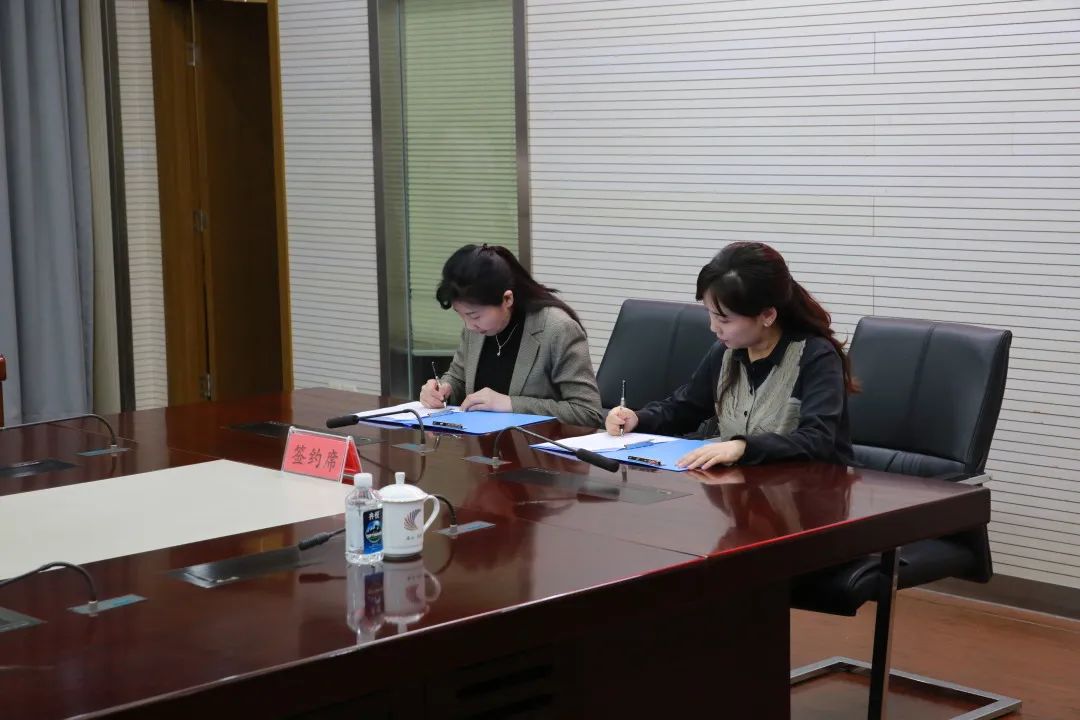 执行院长赵一红(左)与长阳镇副镇长曾佼佼(右)签署“双基地”建设合作协议书