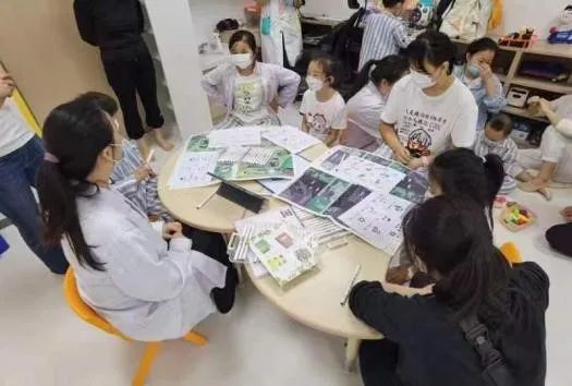 神外小儿组。神外小儿组的服务对象是医院中的儿童,通过小组工作的方式展开。带教老师带领学生招募小组成员,以提前准备的儿童绘本为材料开展小组活动。同学们积极关注儿童们的身体和心理状况,通过专业的小组活动方法,以绘本为媒介,以问答和绘画等方式对在院儿童进行正向的心理引导和情绪疏解,收到了小朋友们及其家长的一致好评。