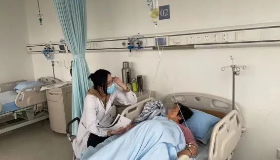 医务社工与病人交流