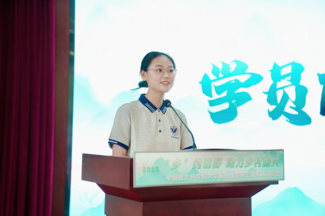 2023级本科生魏泽萱表达了对当地村民和村干部热情接纳的感激之情。她强调,学生们将以“感受、共情、协作”为行动纲领,深入乡村生活,开展调研与服务,增进对国情社情民情的了解,以及对乡村振兴的理解,希望通过实地调研和研究型学习,提升调研能力和综合素养,同时力所能力地回馈当地社区。