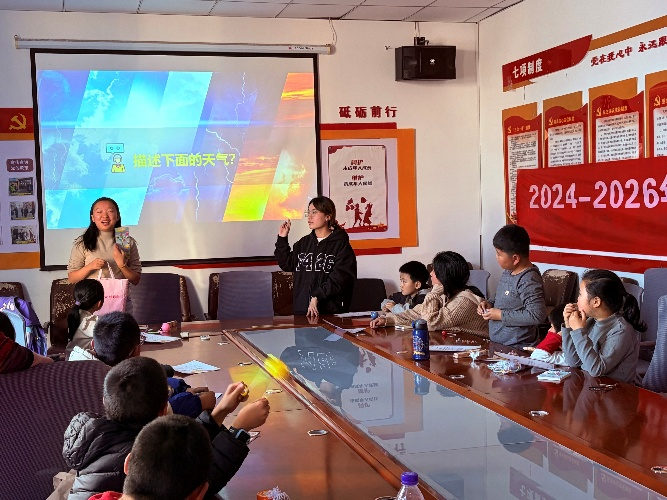 活动现场,乡工项目组社工结合生动的PPT课件,从“天气及其影响”、“天气预报”两大核心模块展开教学。通过图文并茂的形式,孩子们认识了晴天、阴天、下雨、下雪等常见天气,了解了天气 “变化快”、“地域差异大”、“时段差异大”的特点,还知晓了天气对衣、食、住、行乃至农业、军事的重要影响。乡工项目组社工分享了古人通过甲骨文记录天气、确立二十四节气的历史,以及“天上钩钩云,地上雨淋淋”等天气谚语,让孩子们感受到传统文化与自然科学的双重魅力。