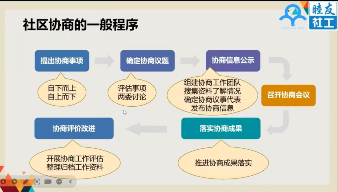 聚焦“主体”与“议题”,厘清基层协商实践边界。本场讲座的核心环节聚焦于厘清决定协商成败的“谁来议”和“议什么”两大基础问题。协商主体需覆盖所有利益相关方,构建由社区党组织、居委会、业委会与居民代表、物业公司、专业社工组成的多元协同网络。协商议题要遵循“可议、可解、可落地”原则,归为社区公共事务、居民矛盾调处、公益服务开展、自治制度建设四大类,同时划定协商红线,违法事项、上级硬性规定、超出社区资源能力的事项均不纳入协商范畴,为基层工作者提供明确操作指南。