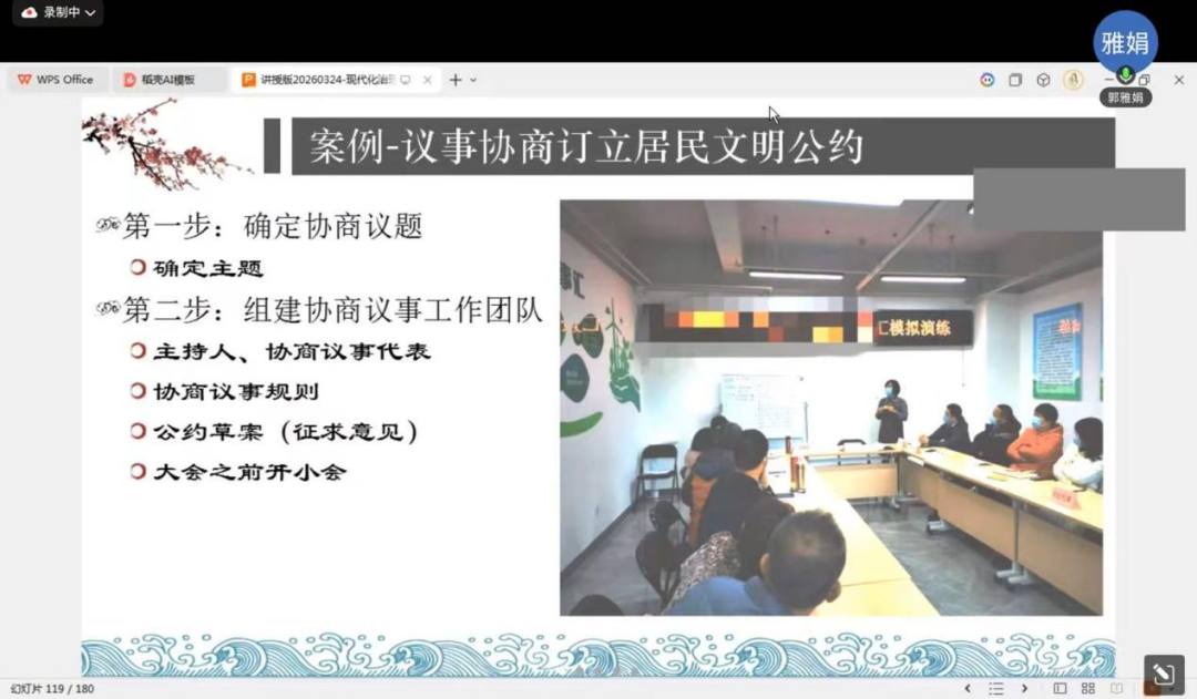 两场培训内容层层递进、相辅相成,构建了议事协商从入门到精通的完整学习路径,将民主协商的理念与规范转化为基层工作者可操作、可复制的实践能力。