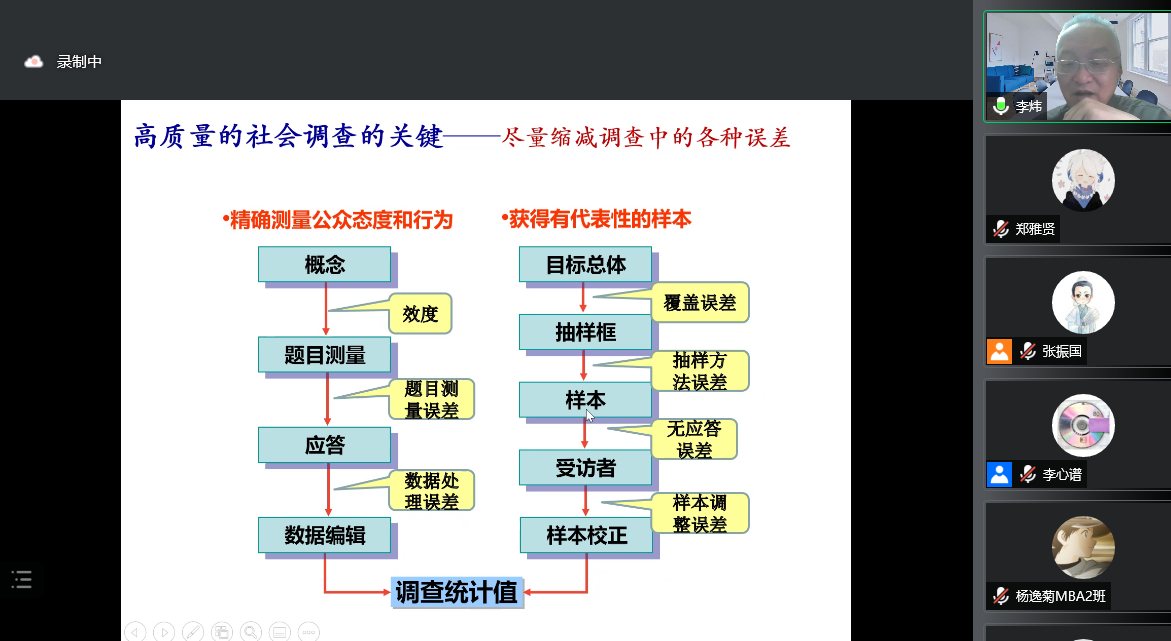 在第一部分社会调查研究概述中,李炜老师首先回顾了中国社会调查的四个阶段。第一阶段是1949年以前的发轫阶段,这一阶段内,社会调查被引入中国的社会研究,权威的社会调查机构初步建立。第二阶段是1979-1989年的破冰阶段,伴随着改革开放后社会学的恢复,社会调查事业重建并发展。第三阶段是1992-2000年的规范化阶段,虽然当时的资金和技术还有所不足,但仍然出现了一些经典的大型调查。第四阶段是2001年至今的学术化和新媒体阶段,更多的大型学术调查相继问世,比如CGSS、CSS等,奠定了我们现在中国持续性的大规模的学术调查的基本底色。