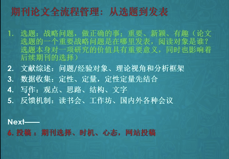 杨典老师在本次讲座中重点以《社会学研究》为例,系统讲解了期刊论文从选题到发表的全流程管理。