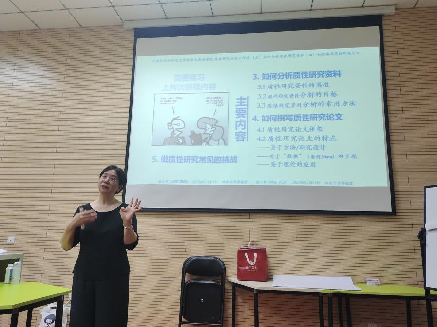 副教授童小军教授主讲的“质性研究方法工作坊”在教学楼社工实验室举行。本次工作坊主要分为三个主题,一是如何提出研究问题并选择对应的研究方法,二是如何应用五种基本的质性研究方法,三是如何撰写质性研究论文,来自全校不同专业的本硕博同学参与学习。
