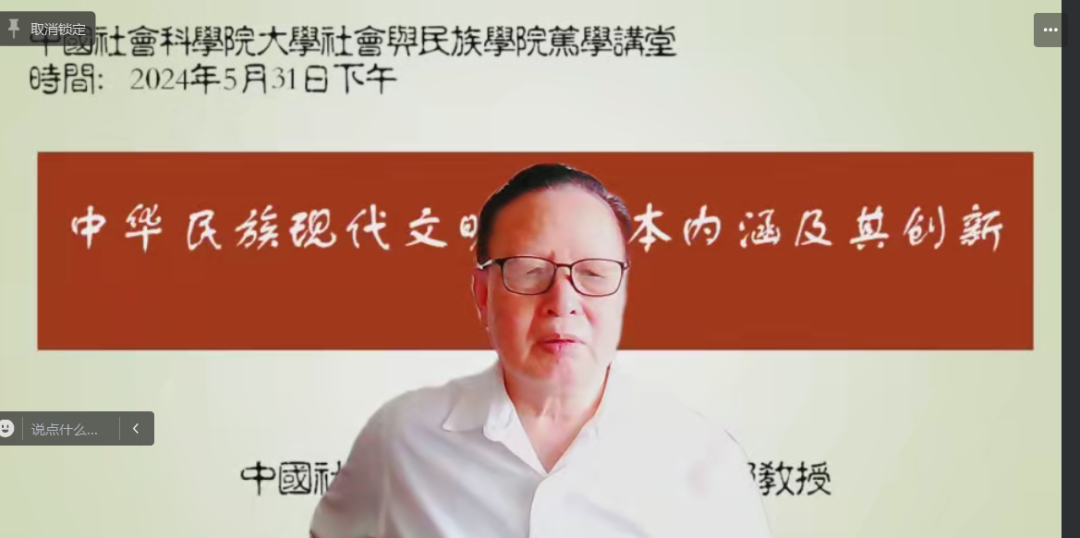 首先,韩芸老师为大家介绍了何星亮老师,并且强调文明是一个国家,民族进步的标志。中国式现代化赋予中华文明与现代力量,中华文明赋予中国式现代化深厚的底蕴。何星亮老师将会分别从历史维度、现代维度、文化维度和全球维度来探讨中华民族现代文明的基本内涵;接下来,何老师也会分析创新性与中华民族现代文明建设的关系,从理论创新、制度创新、科技创新和文化创新四个角度探讨建设中华民族现代文明的具体路径。