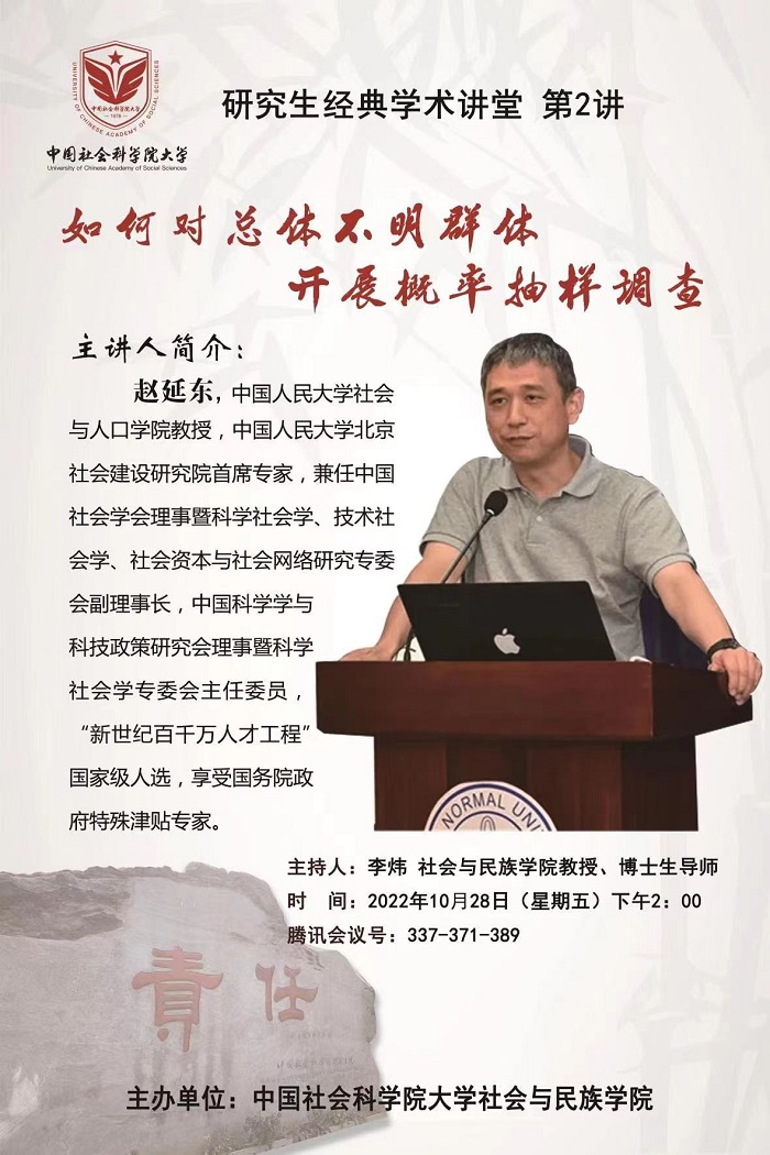 韩漫库 研究生经典学术讲堂 第2讲—赵延东:如何对总体不明群体开展概率抽样调查