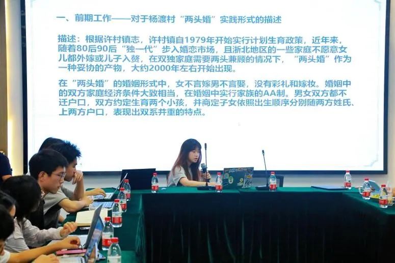 上午的学生汇报环节从9:00到12:00进行,分为三个部分。首先是杨渡村的研究,蒋经纬同学介绍了许村镇养老体系的现状、困境与发展,庞怡勤同学探讨了“厂二代”接班后经营模式的改变,唐菲玥同学分析了影响“两头婚”婚姻选择的因素。接着是李家村的研究,阚天颜同学讲述了志愿服务融入基层治理的情况,贺新月同学研究了村庄交通安全治理。最后是斜桥村的研究,毕林丰和郭骁鋆两位同学探讨了农村老年人退休再就业的类型差异与影响机制,王丝和宋训安同学介绍了“两新工程”背景下的搭户建房行为与熟人社区的兴起,沈艾琪同学分析了村企合作助推共同富裕的连接机制,潘晶鑫同学研究了多重身份基层工作者的资源整合实践。