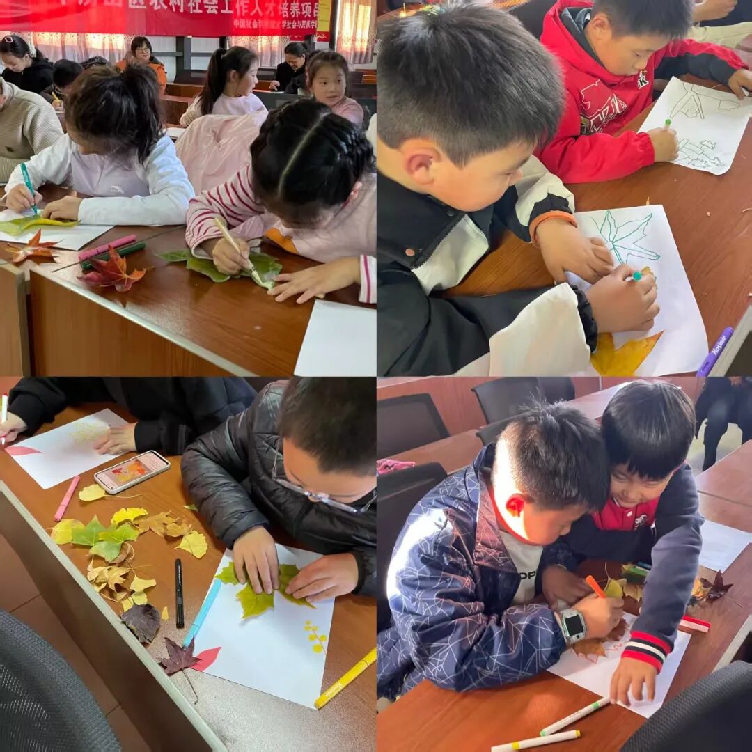 此次“秋叶奇遇记”主题活动,不仅让孩子们认识了多种树叶的特征、掌握了树叶拼贴的艺术技法,更在自然探索与集体创作中收获了珍贵的友谊,提升了沟通协作与情感表达能力。未来,乡工项目组将继续联合沙窝村乡工,开展更多贴合儿童成长需求的特色活动,以自然为媒、以艺术为桥,助力孩子们在快乐体验中全面发展,织就充满阳光与欢笑的童年时光。